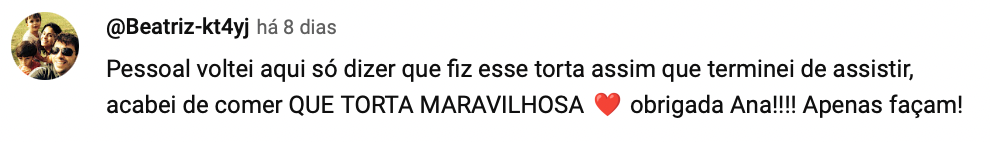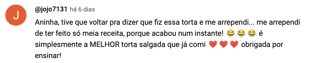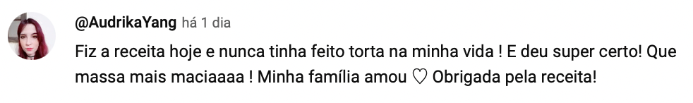 Eu amo ver vocês fazendo as minhas receitas e comentando sobre elas. No YouTube já alcançamos mais de 900 mil inscritos graças a vocês!